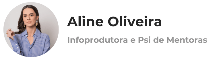 Aline é infoprodutora e psi de mentoras. Ela sabia que: se quisesse vender alto ticket, precisava parecer valer alto ticket. O público disposto a investir alto, valoriza qualidade, credibilidade e profissionalismo.